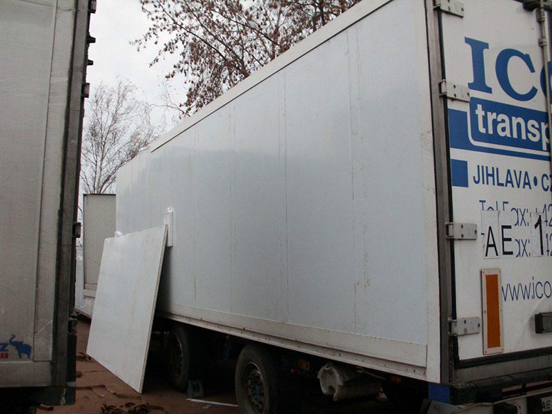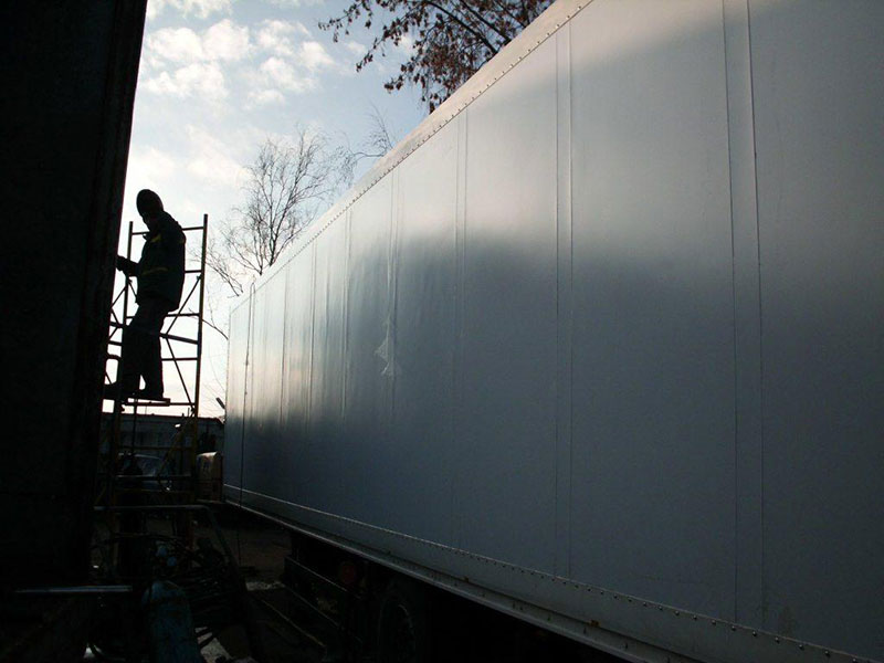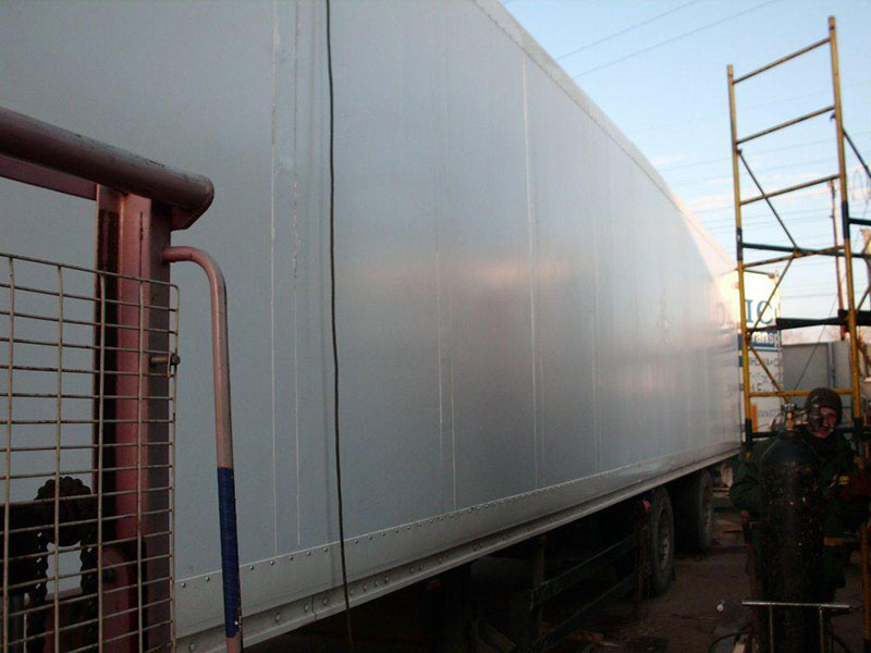 Ремонт фургонов из сэндвич-панелей производится путем полной или частичной замены сэндвич-панелей стен автофургона. При распирании стен на фургонах из сэндвич-панелей у нас отработана операция по скреплению стен внутренними и наружными уголками.